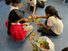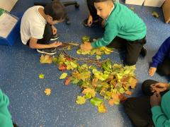 This week Year 2 have been looking and collecting leaves ready for our natural collages! We worked in teams to create a group picture inspired by Andy Goldsworth.