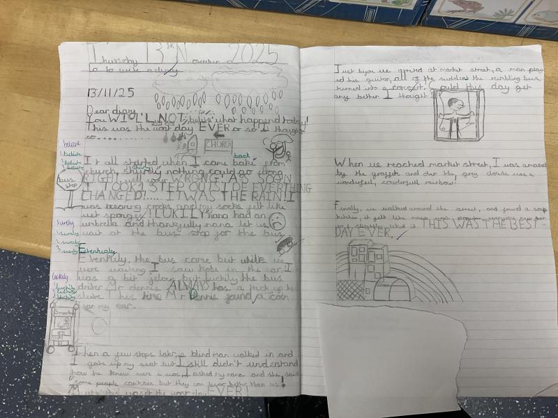 What a fanatastic week! In English, we had been reading "The Last Stop on Market Street" and looked at the eventful journey that Cj had on the bus. This week, we hotseated as CJ and answered questions about his thoughts and feelings he had whilst he was on the bus. We then created such fabulous plans and diary entries as if we were CJ, describing our whole and how the journey to Market street went! We enjoyed creating our wonderful diaries,here are some fabulous entries.