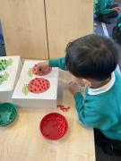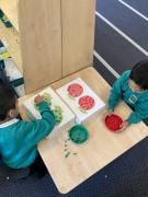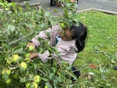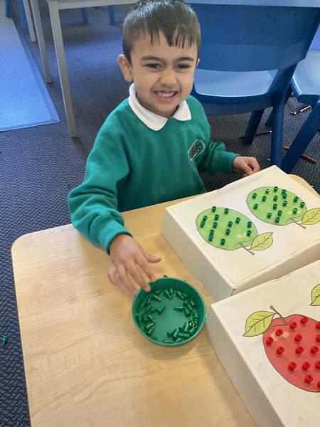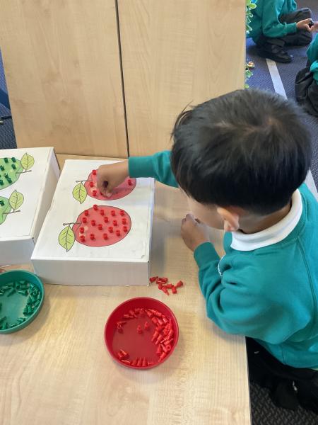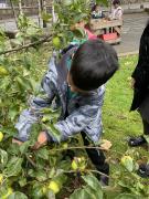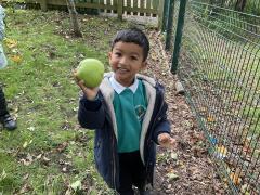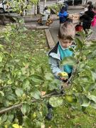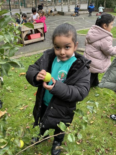 This week we explored where apples come from and how they grow. The children were very excited to work together to pick the apples from our trees in the garden. We tasted the apples at snack time, they were delicious! Some children thought that they were sweet and some children thought that they were sour! We are looking forward to making chocolate apples with them as a special treat next week.