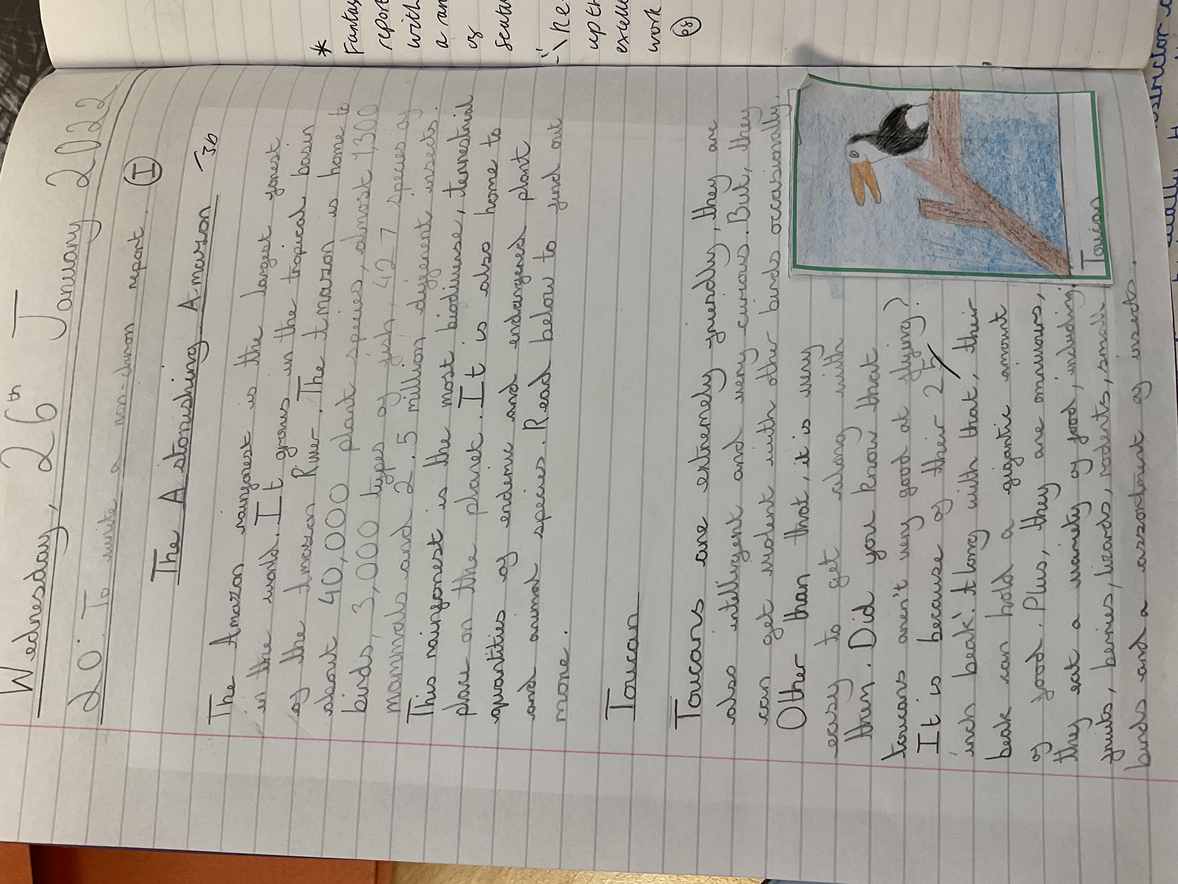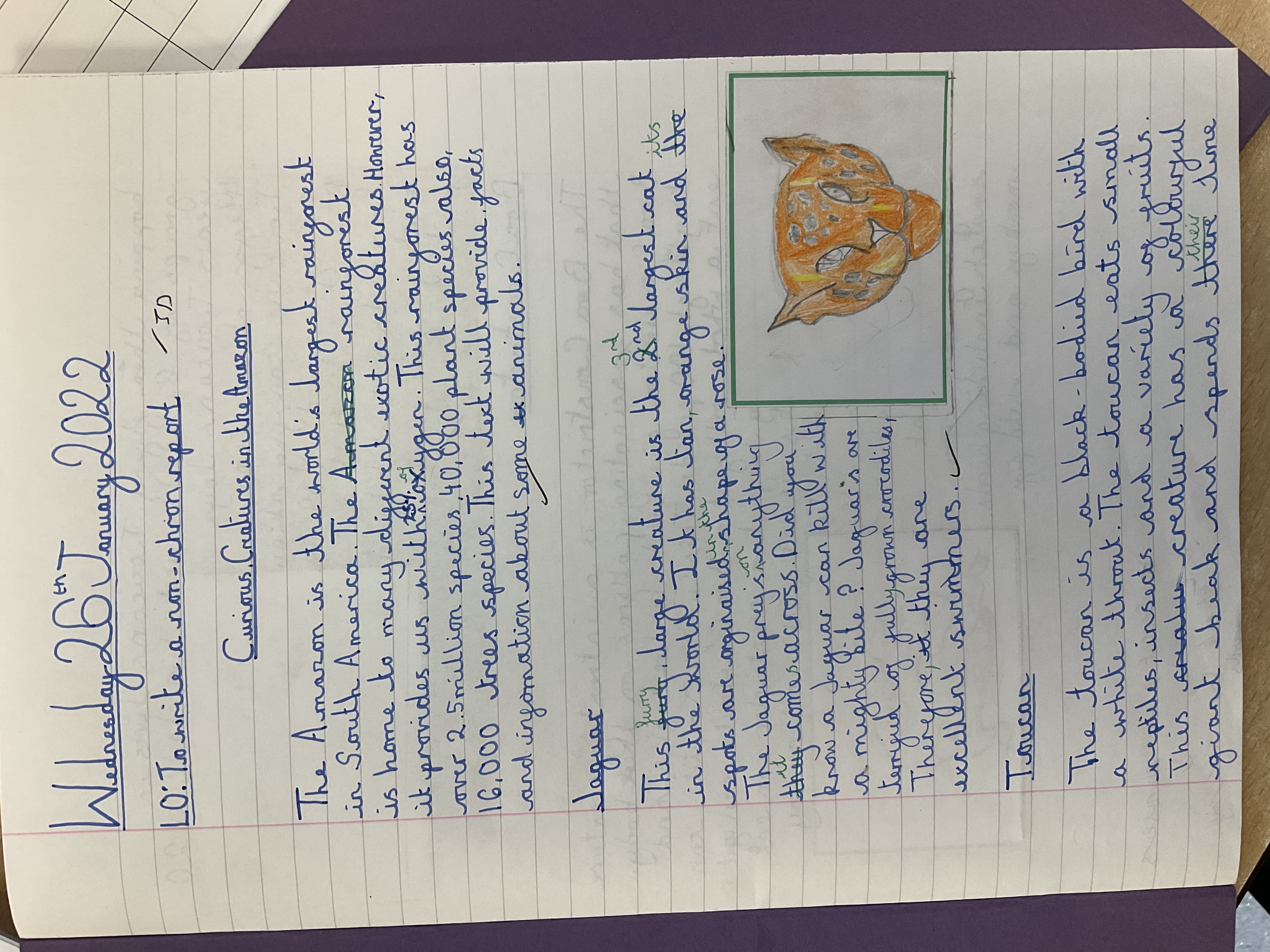 After spending a week researching facts and learning how to write a non-chronological report, year six couldn't wait to write their reports on animals in the rainforest. The reports were full of noun phrases, interesting facts and exciting pictures. We're really proud of these reports and we hope you're impressed.