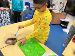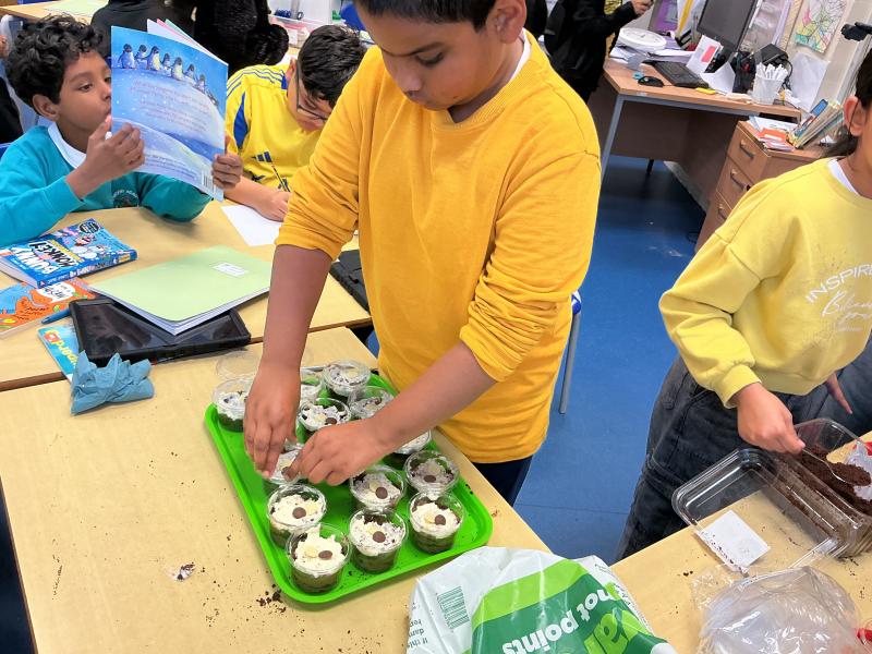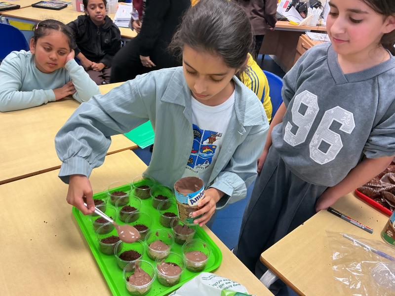 Our class also had lots of fun making chocolate trifles for the school bake sale. The children enjoyed mixing the ingredients, layering the chocolate and decorating the tops. They worked really hard and helped raise money for Children in Need.