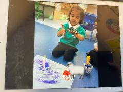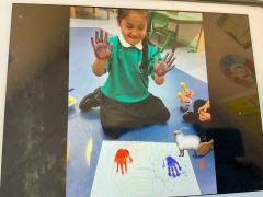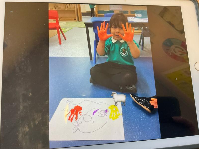 This week in Nursery, we learned the rhyme Baa Baa Black Sheep. We all tried really hard to join in with the words and actions. We practiced our counting skills and made sure the farmer had enough sheep on his farm. We explored colour mixing and made our own colourful sheep. We enjoyed finding out how different colours are made by painting each others hands and mixing two colours together. It was a very fun and messy week in Nursery!