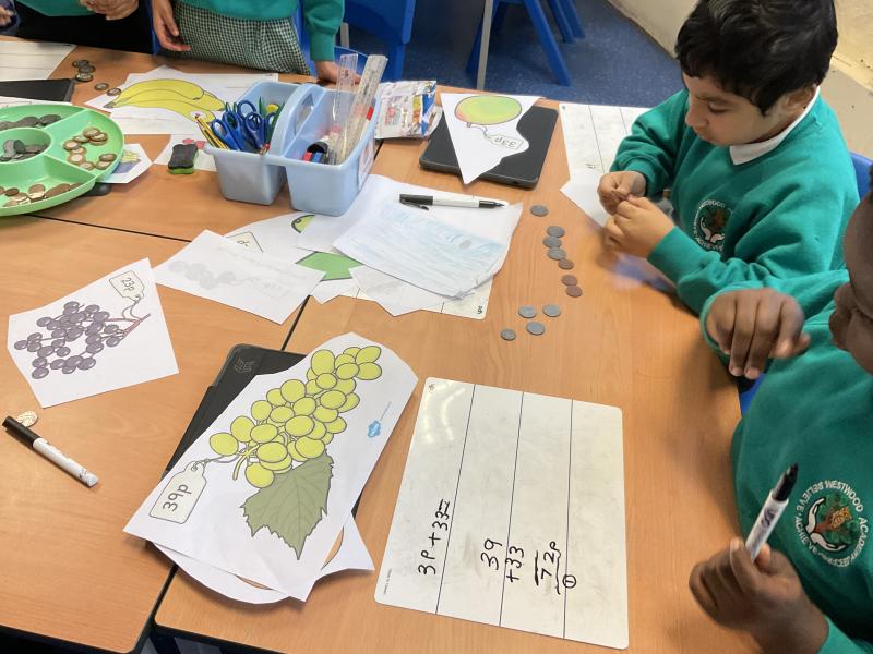 This week year 2 have carried out with our unit of Money in Maths and have been looking at, counting money and different ways we can make £1. They visited 'Westwood Shop' and choose items to buy, which they then added all their items together to find out how much it cost them.