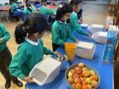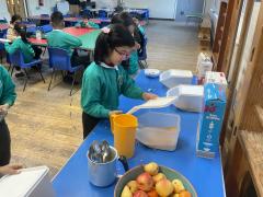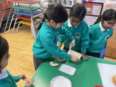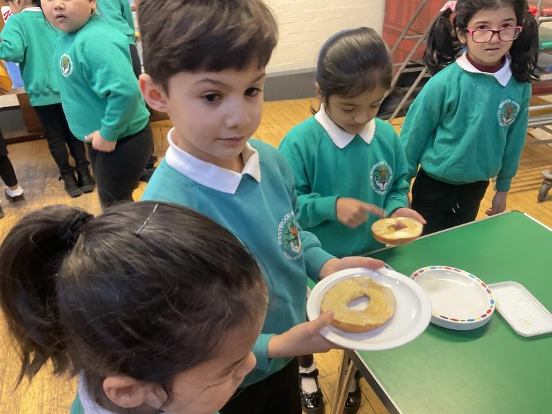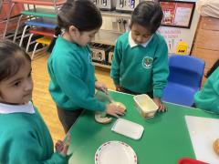 In RE this week, Year 1 have been learning all about how Sikhs show they care and selfless for others. We listened to the story of 'Guru Nanak and the Boulder' and thought about what it teaches Sikhs about caring. We also learnt all about how Sikhs volunteer at the Gudwara for Langar. We then decided to volunteer during Breakfast Club every morning. We helped butter bagels, clean up, serve cereal and ask children how they were feeling. We had lots of fun and learnt how rewarding it can be to care for others.