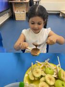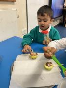 What a yummy time we had turning our apples all chocolatey! We had lots of fun finding out what happens when we warm chocolate up. We then used the chocolate to decorate our apples from the apple trees. We even put sprinkles on them! We were very patient and waited for home time so that we could show our familes what we had made.