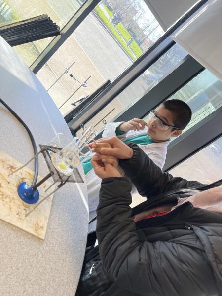 Today, Year 5 visited Oldham Sixth Form College as part of our science topic on reversible and irreversible changes.