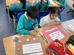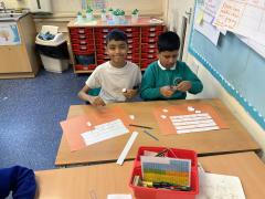 In Maths, we have been learning about equivalent fractions. We had lots of fun building fraction walls to help us find different equivalent fractions. We were amazed when we discovered that 3/9 is equivalent to 4/12! Why not ask us if we can find some more equivalent fractions?