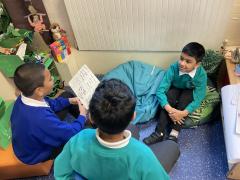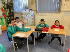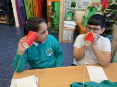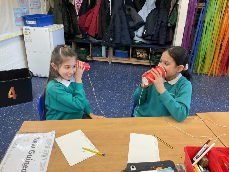 In PSHE, we have been learning about how to be a good listener. We discussed different ways we can show we are listening and created a set of class rules to help us. We also had a go at using string telephones to see how well we could listen to our partners.