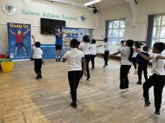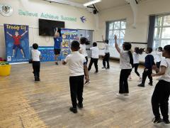 Today Year 2 had a visit from Freddie Fit! We joined in with lots of different activities like throwing and working as a team to score points. The children loved doing the dances to warm up and cool down.