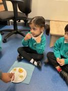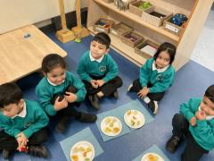 This week in Nursery, we read the story Handa's Surprise. We really enjoyed exploring the story and making a stroy map to help us to retell what happened. We made animal footprints using animals from the story and enjoyed dipping them in paint. We ended our week by tasting all the delicious fruits that Handa put in her basket. We all agreed they tasted delicious but couldn;t decide which one was our favourite!
