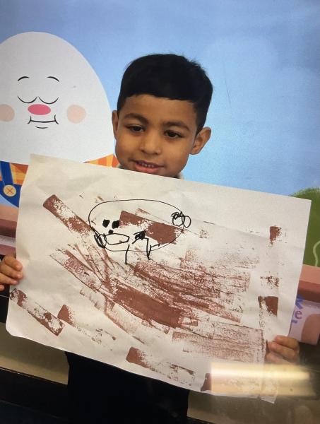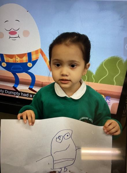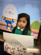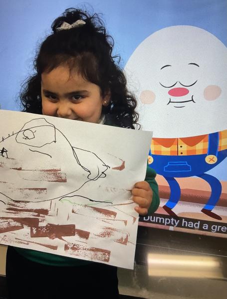 This week we sang the nursery rhyme 'Humpty Dumpty'. We enjoyed singing the rhyme and joining in with the different actions. We printed our own walls for Humpty and then drew him sat on top. In maths, we have been exploring big and small and worked hard to give Humpty Dumpty the correct sized objects.