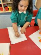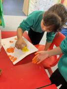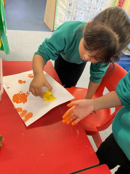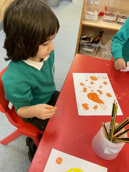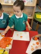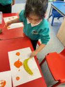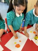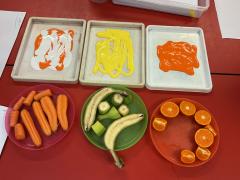 This week as part of our learning all about 'Food', we read the non fiction book I eat Fruit. We enjoyed talking about our favourtie fruits and had fun using fruit to print using paint. It was very messy, but we enjoyed seeing the different textures that our fruit made as we printed.