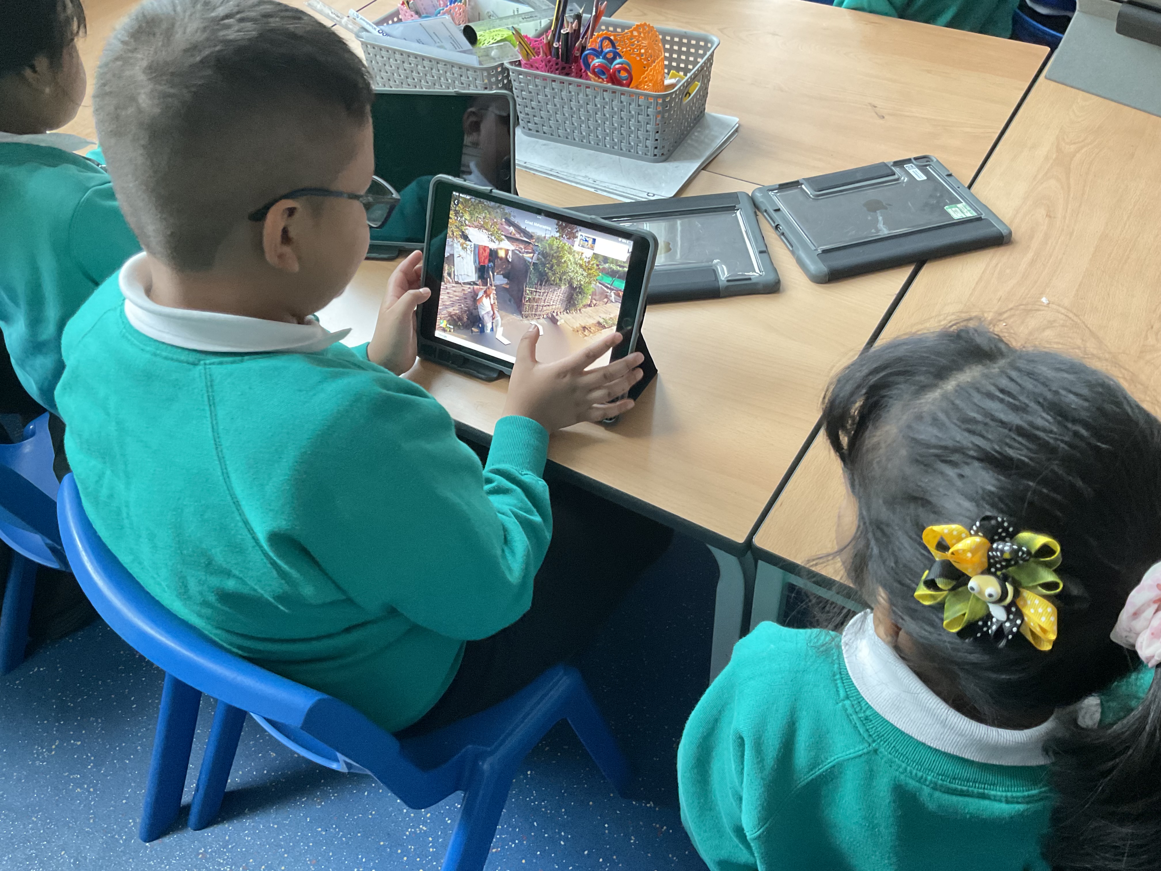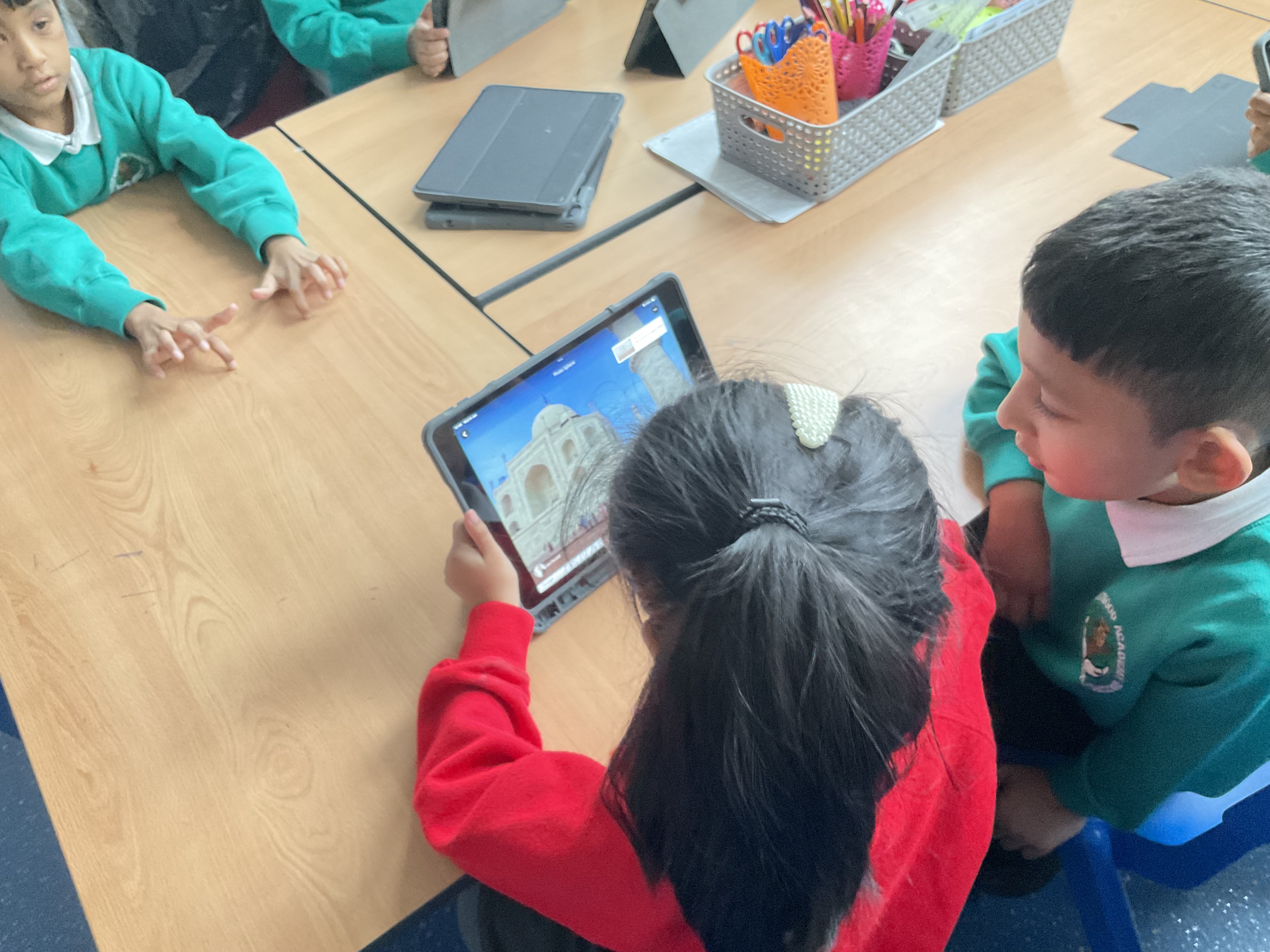 This week we started our new Geography topic 'I is for India'. We began our learning by finding India on the map and looking at what continent it is a part of. We then explored India on Google Earth and looked at his famous landmarks such as the Taj Mahal, the Lotus Temple, River Ganges and Himalaya Mountains. We were able to use street view to walk around and imagine we were there!