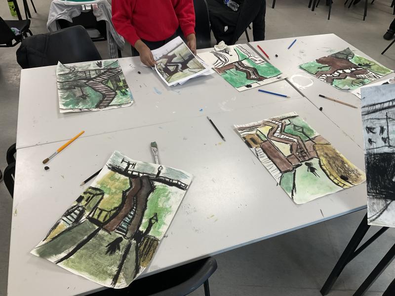 In our workshop we created our own Lowry pieces of artwork using oil paints and oil pastels. We experimented with primary colours to understand dark and light tones.