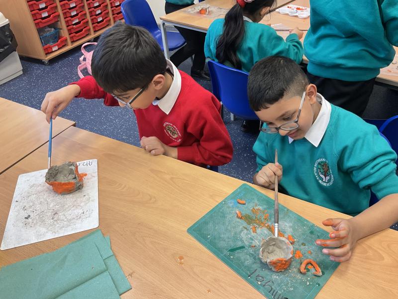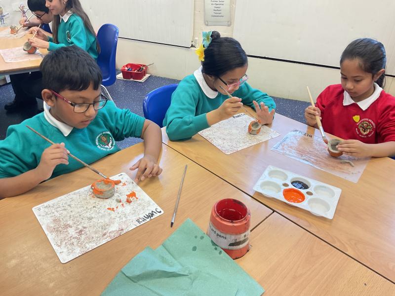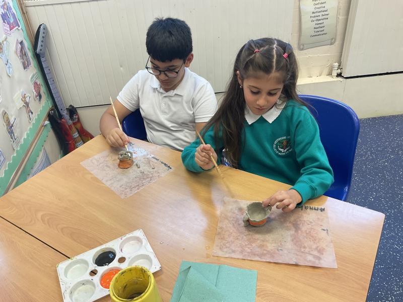 In Art, the children have been painting their Greek pots using traditional patterns and colours inspired by Ancient Greek pottery. Their designs are looking amazing, and we can’t wait to see the finished pieces!