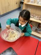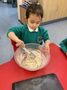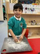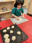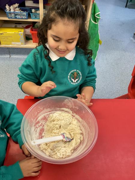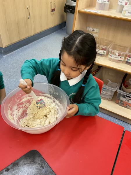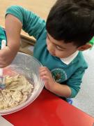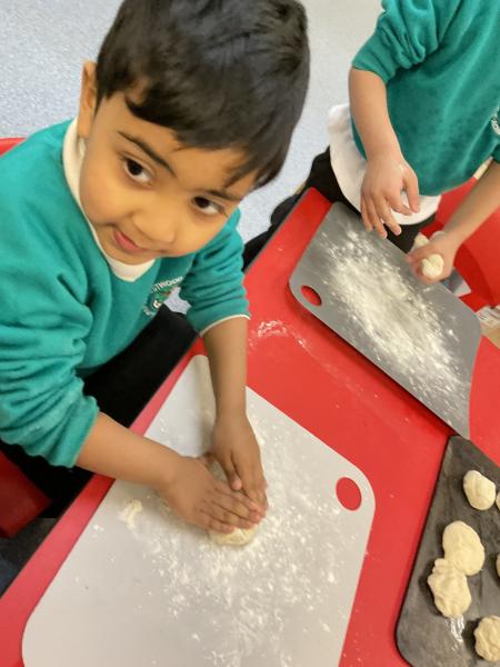 This week in Nursery, we explored where bread comes from using the story The Little Red Hen. We had lots of fun pretending to be the hen and joined in the repeated phrases when reading the story. We made our own bread just like the Little Red Hen and shared it with our friends. In art, we made our own Little Red Hen using our handprints. In Maths, we made our own song called 5 bread rolls in a bakers shop. We sang the song and joined in counting.