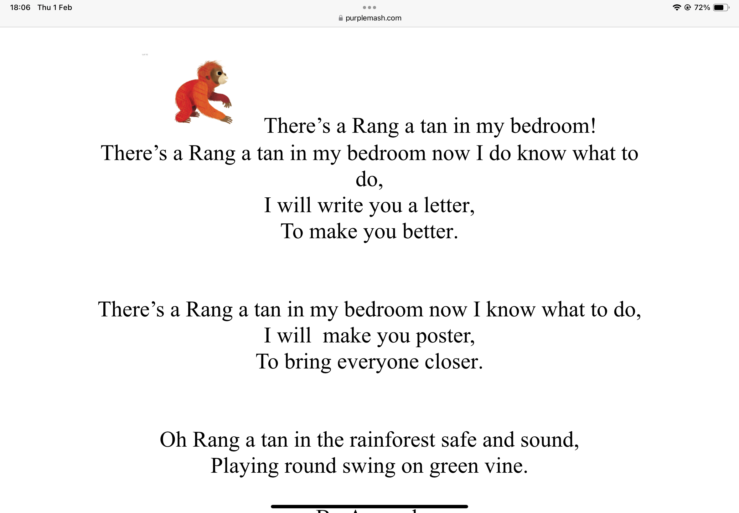 This week in year 4, we have been looking at the poem "there's a Rang-tan in my bedroom!" And we gathered ideas to help bring the orangutan back into the rainforest. We have had fun making our own poems with our brilliant ideas! #becreative