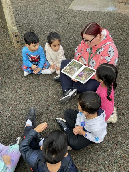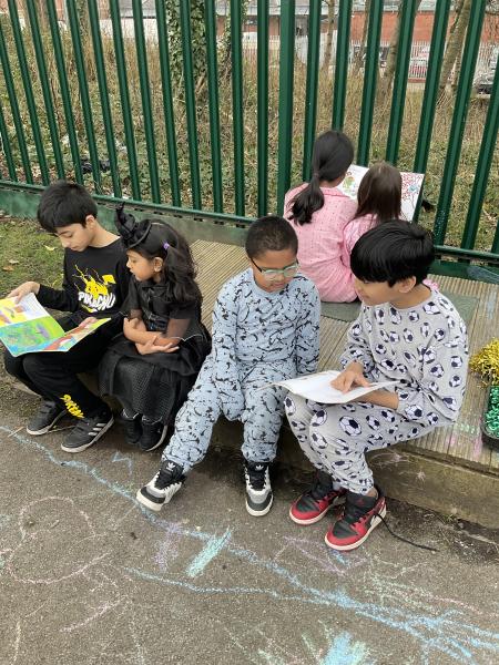 We had a wonderful day celebrating World Book Day by coming to school in our pyjamas. We especially enjoyed our visit from year 6 and had a lovely time reading with them outside in our garden.