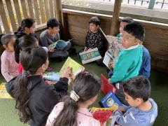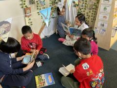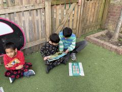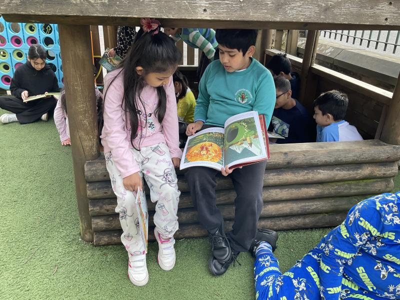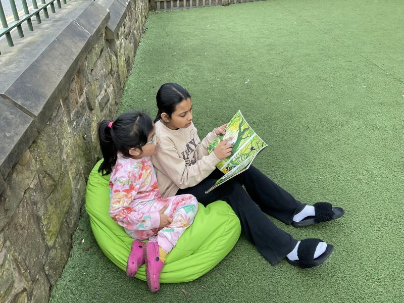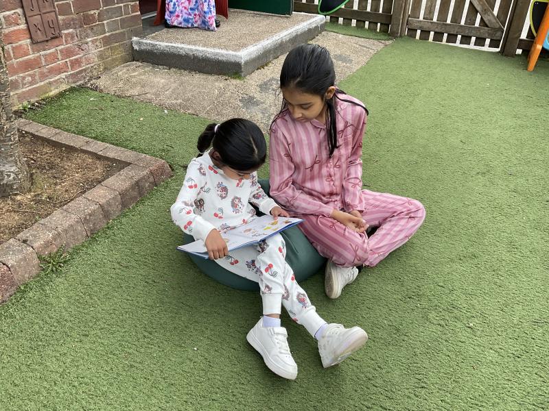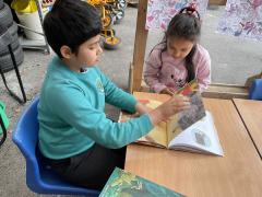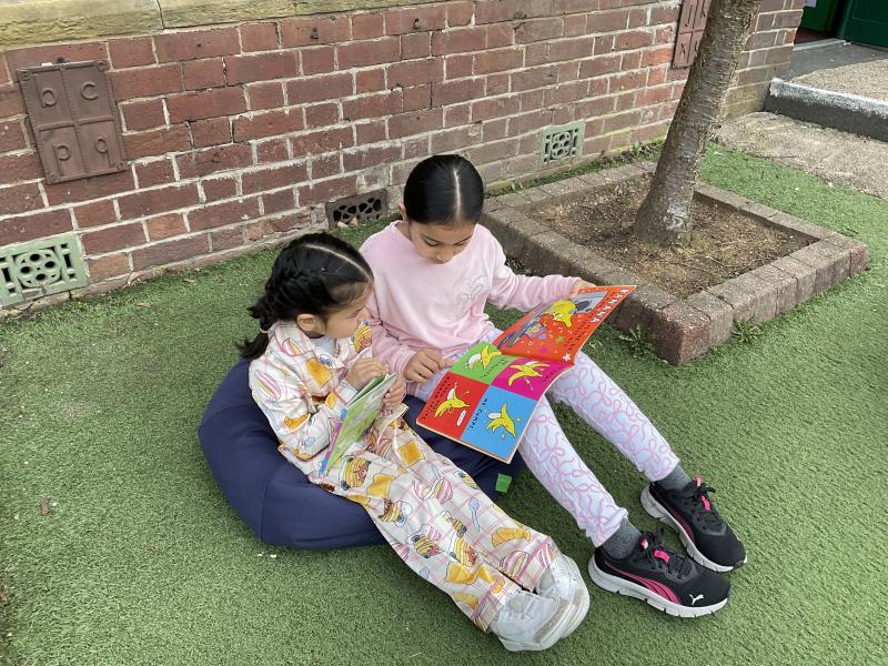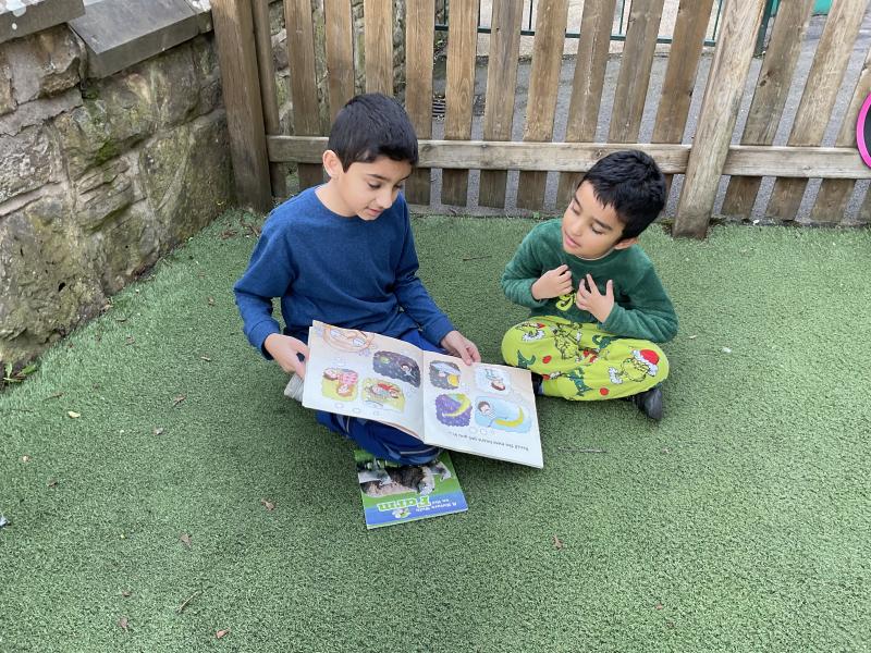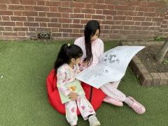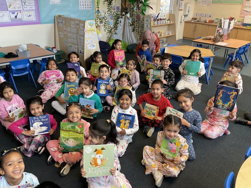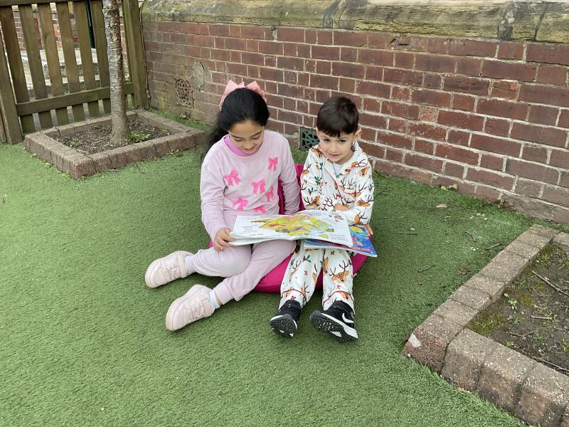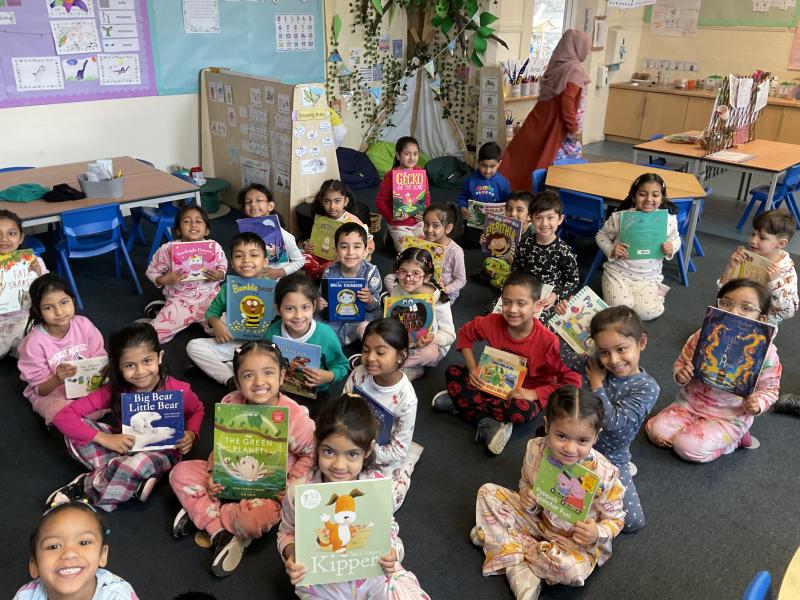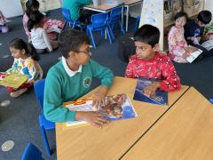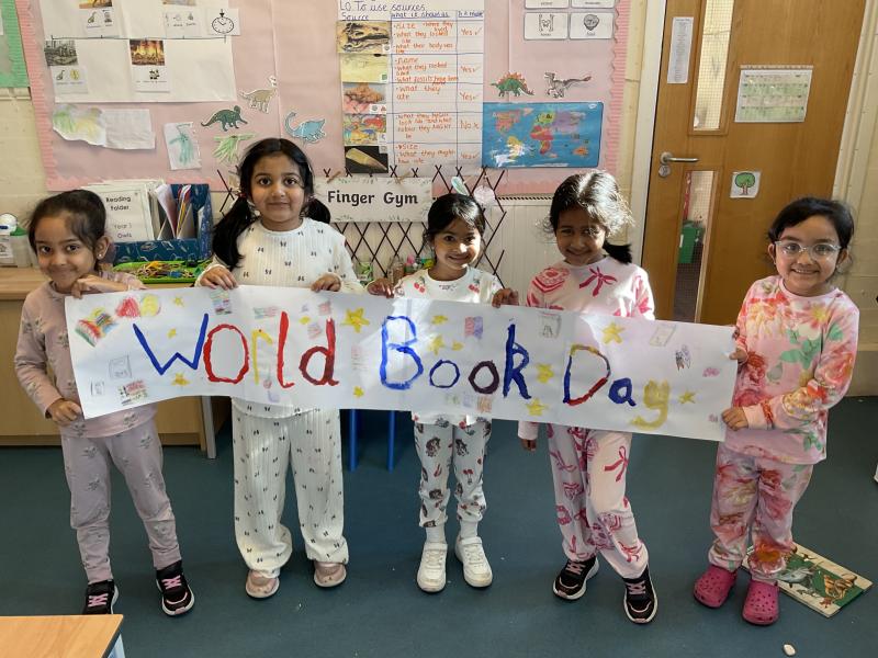 We had lots of fun in school in our pyjamas for World Book Day! Year 5 came to visit us and we read to each other. We shared our favourite books from home with the class. We even created some decorations for our delicious World Book Day lunch!