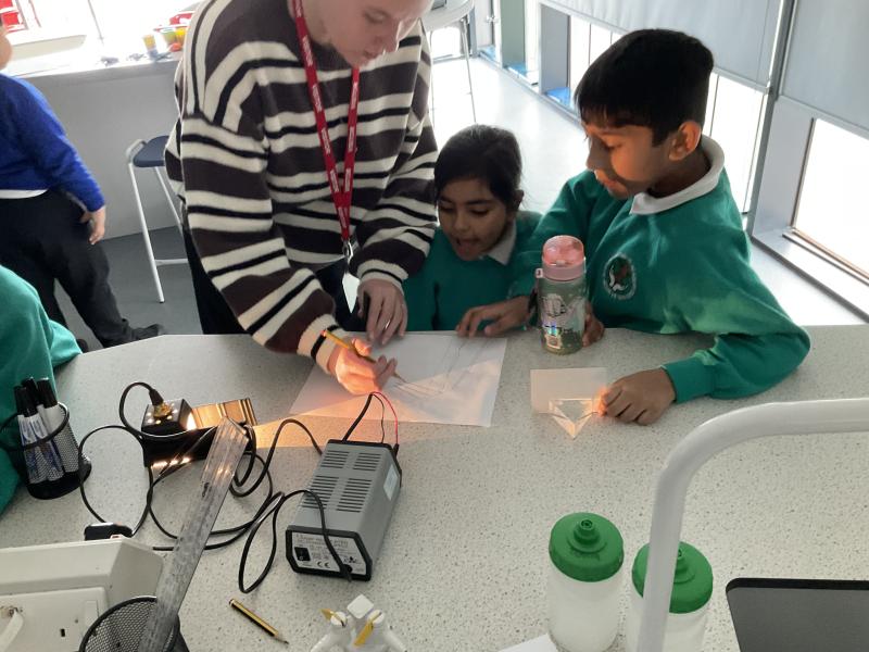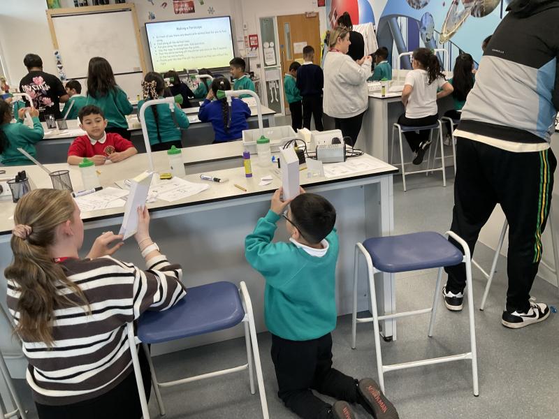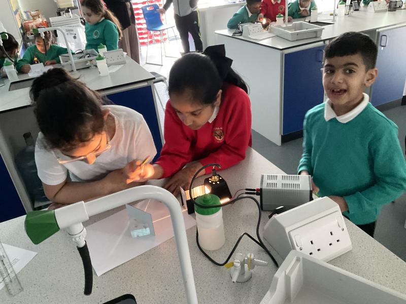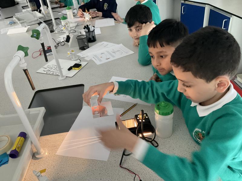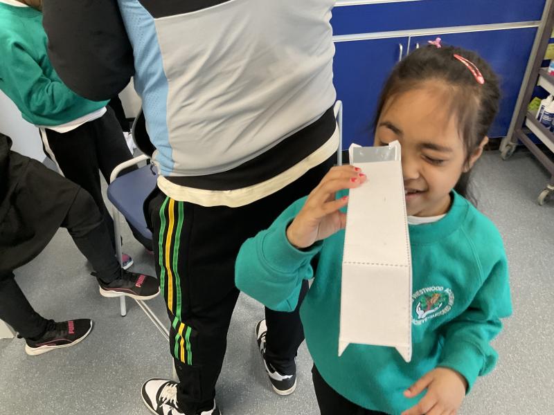 This week we had the opportunity to visit Oldham Sixth Form again to complete a fun science expierment all about our prior learning about 'Light'. We learnt about how science reflects and how you can change that reflection to create shadows. We then were given the opportunity to make our own periscope. It was so much fun testing it out to see if we could spot our friends when we hid!